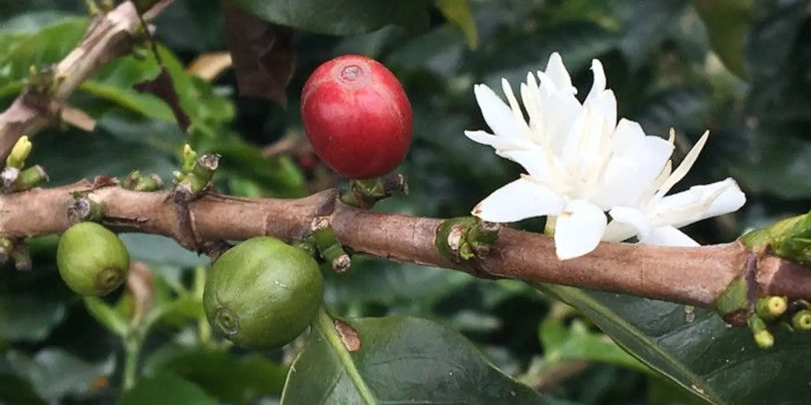 在特別準備的育苗床中,種子需五至六週才能長成幼苗。之後會移栽至專用的獨立容器中,經過六至八週的生長,便能長成真正的咖啡植株,再移栽至農場。咖啡植株呈灌木狀,最高可長達十公尺。但在農場,為方便採收,植株通常會修剪至1.5至2公尺高。其根系可延伸至地面2.5公尺深。咖啡葉為深綠色,一面平滑,一面革質,長度為8至15公分。雨後首度開花,花朵為白色星形,並帶有怡人的香氣。不過,花期通常不長,因花瓣極易迅速脫落。